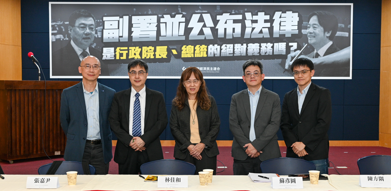 本場論壇由台灣經濟民主連合主辦,主持人為周婉窈(台灣大學歷史學系名譽教授),講者包括張嘉尹(東吳大學法學院特聘教授)、林佳和(國立政治大學法學院副教授)、蘇彥圖(中央研究院法律學研究所研究員)、陳方隅(東吳大學政治學系副教授)。經民連希望透過這場學者座談進行問題的分析,與可行方案的討論,嘗試為此重大憲政爭議問題凝聚公民社會之共識。