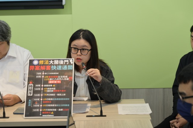 林芯羽指出,上述三個法案及眷改條例都是為特權個案修法解套。請中國國民黨人尊重司法判決,不應該讓立法院成為弊案、特權、違法甚至貪污者的「解套院」 。