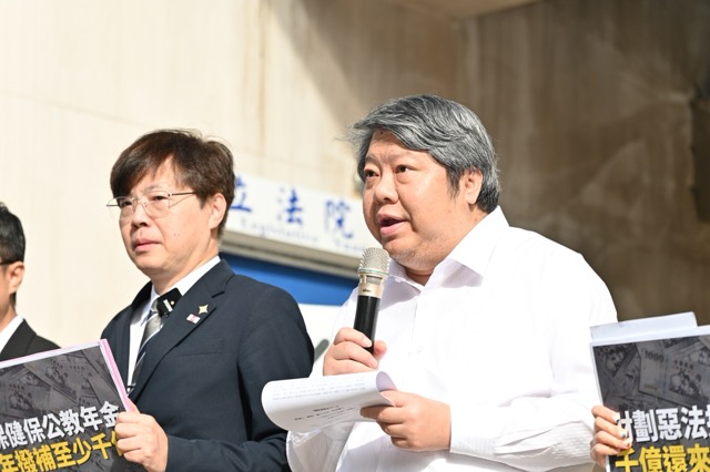 今天我們在這裡,開這場記者會,是因為執政的民進黨,在遲到了很久以後,終於提出了行政院版的財劃法修正草案,但是卻遭到藍白兩黨的惡意封殺,至今仍無法順利付委審查。我們不是反對地方要有錢,而是要告訴台灣社會,如果不顧一切後果的把錢往地方挪,會造成什麼樣的後果?那就是台灣的社會安全網,特別是包含勞保、健保、軍公教的保險,都會面臨崩潰的風險。