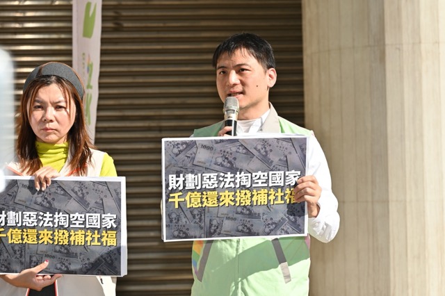 台灣綠黨嚴正要求:在確保每年撥補勞保1,300億元、健保與社福預算穩定無虞之前,請立即退回這部危害國家財政與社會正義的財劃法!把錢還給需要的人,把保障還給辛苦的勞工!